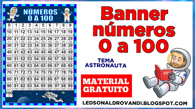 Banner números 0 a 100 tema astronauta material gratuito