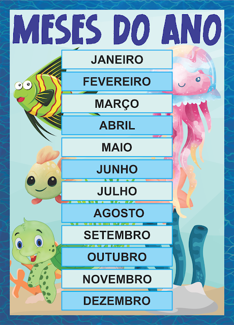Banner dos meses do ano do fundo do mar